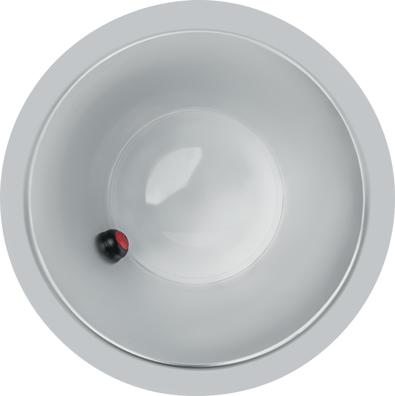 Low-iridescent anodized aluminum with 1/2″ standard flange and diffuse polycarbonate lens at top of open reflector. Semi-specular finish standard. |